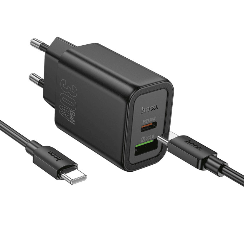 HOCO N63 Dual Port 30W Fast Charger Set – Power Up Two Devices at Once!