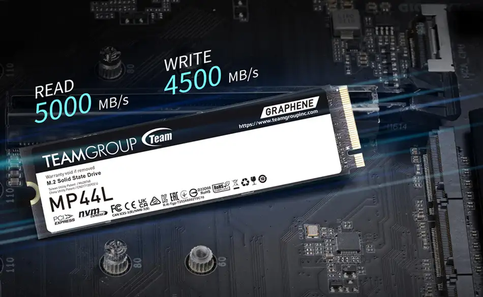 With its advanced PCIe Gen4 x4 interface, blazing-fast speeds up to 5000MB/s read and 2500MB/s write, premium Graphene-coated heat dissipation label, and extensive 5-year warranty, the Team MP44L stands out as a high-performance SSD designed for speed, durability, and long-term reliability.
